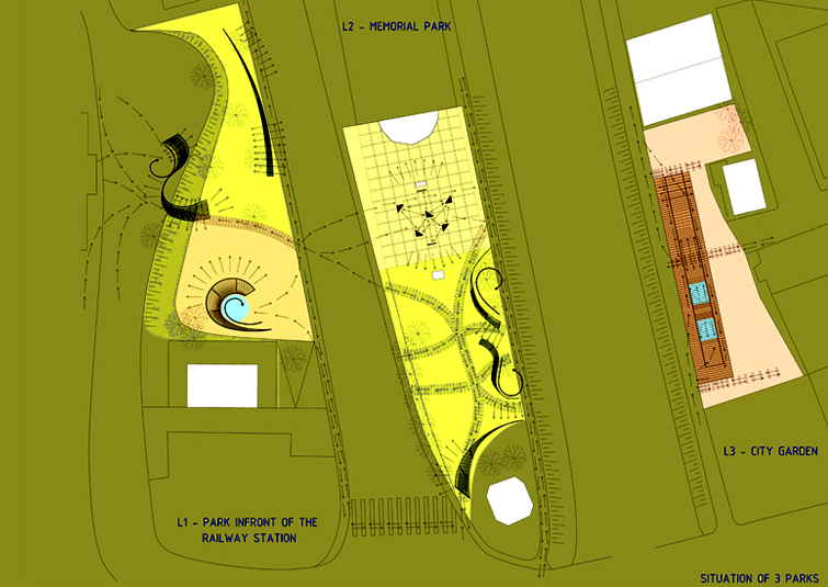 Three existing parks have explicitly transitional character. The aim of the project is to transform these spaces to focal points or points of interest.