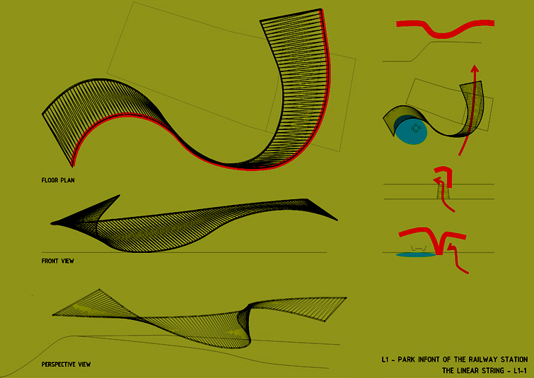 The strings are free standing spatial formations which influence with its position, course and dimension to the usage and experience of the space.