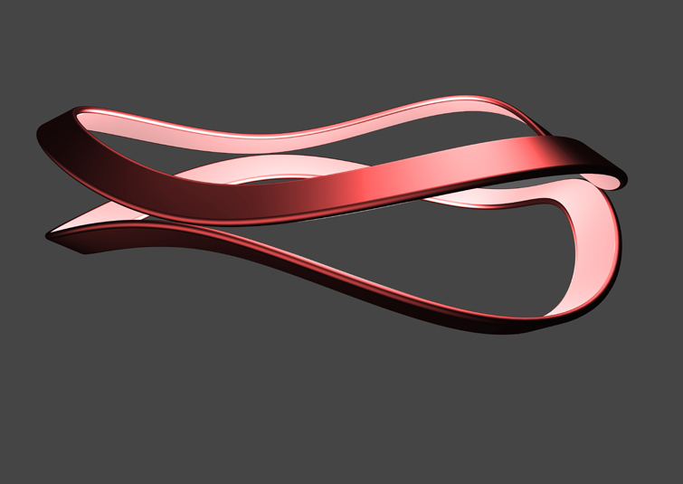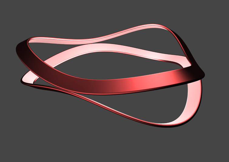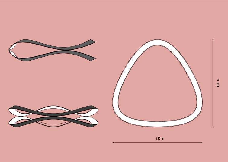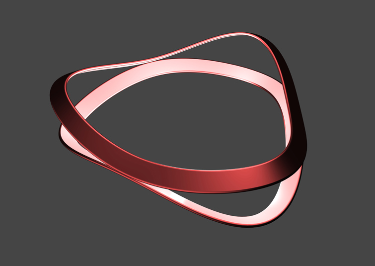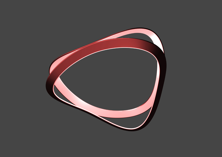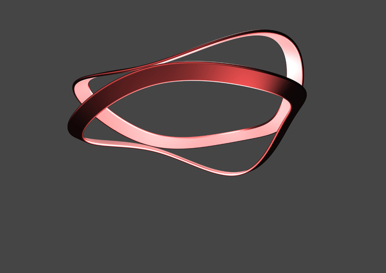 The waved line of two enclosed rings assembled together in a mirror relation results with an elegant and dynamic formation of two lighting stripes.