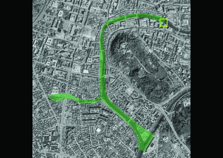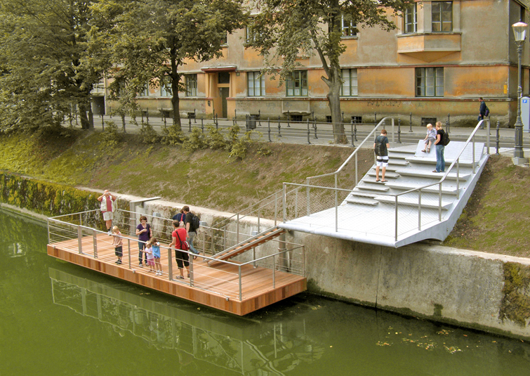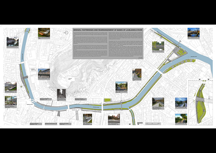 The main purpose of the rearrangement of the space along the river crossing the old city core after the regulation at the bottom of the concrete channel was to integrate the water element into cityscape and to enliven its banks. Since than, besides of PleÄnik’s works the most of the public places along the river remained not equipped with modern infrastructure, only a little part of their was exclusively used of pedestrians. The narrow streets and squares along the river were over crowded with motor traffic that hindered people to walk, meet, talk and interact. They were designed primarily for riding and parking.