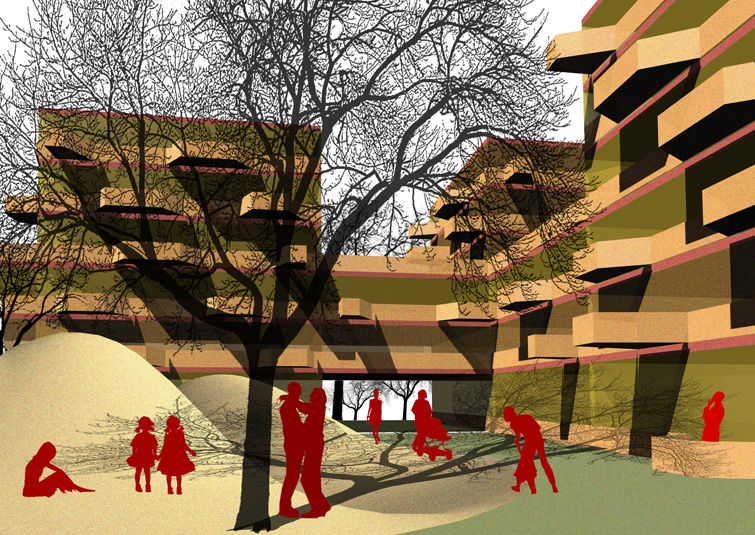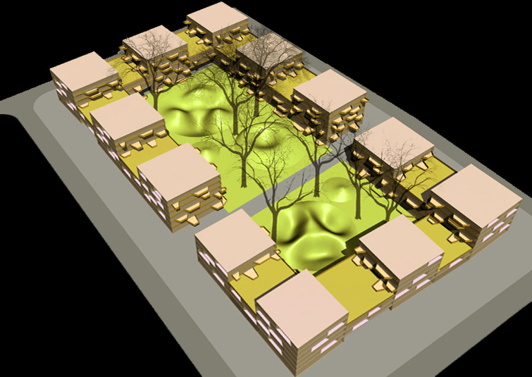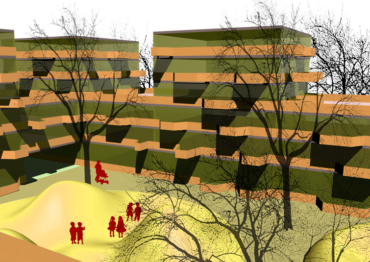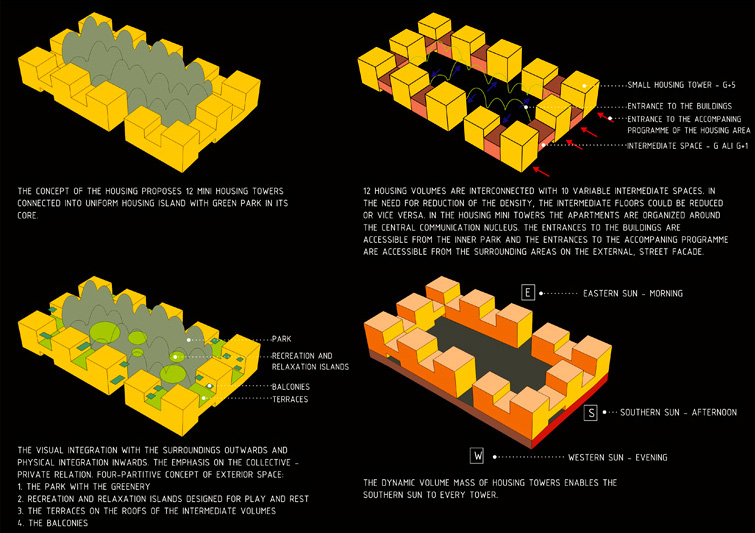 The project suggests a housing typology which will present rational distribution of building volumes on the site and at the same time quality housing architecture which will suit contemporary residential conditions:
