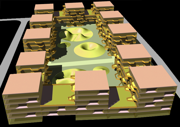 2. The thinning of the building mass to enable two, three or even four-side orientation of the apartments,