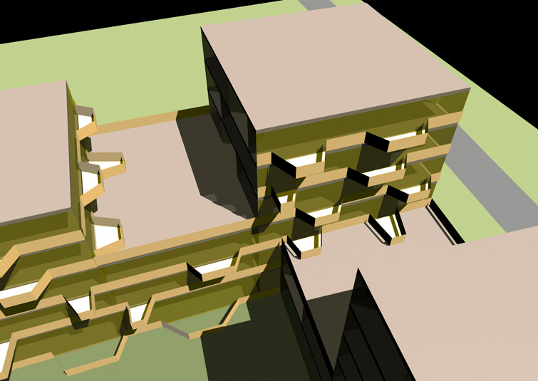 4. The closing of the building block volume toward south as a sound barrier and preservation of intimacy.