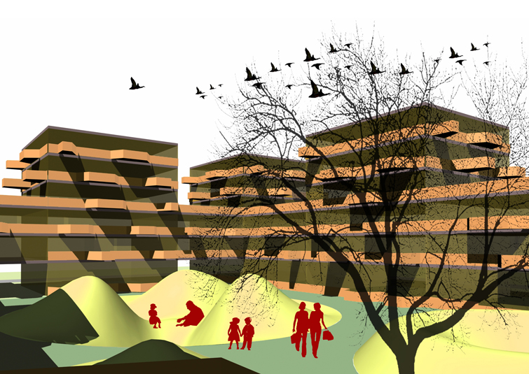 Project suggests spatial operational matrix for two large plots M1-f and M1-g which are part of a larger area of Gajnice, suburb of the city of Zagreb. The area is predeterminated for an intense housing development. The project was commissioned as a case study for the feasibility analysis.