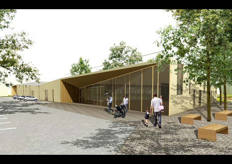 The municipality of Brežice in cooperation with The Chamber of Architecture and The Spatial Planning of Slovenia have invited applications for public project, open and anonymous architectural competition for the kindergarten „Mavrica“ in a small town Brežice, Slovenia. Among 64 submissions, commission assigned the 1st prize to the Ljubljana based group of architects: Breda Bizjak, Lidija Dragišić M.A., Katja Florjanc, Emir Jelkić, Ajda Vogelnik Saje.