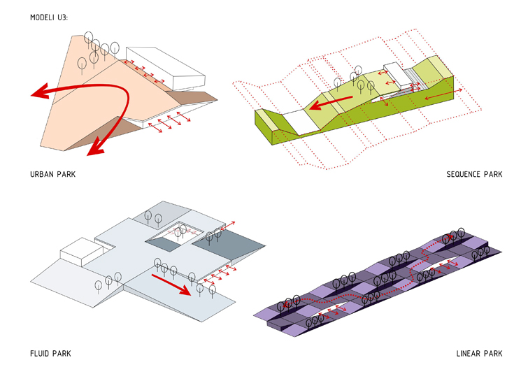 U3 are interventions on a wider river bank area with addition of a few different programs that are linked with the river and the city.