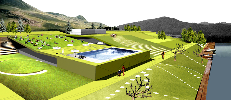 A park is an ambience prepeared for various events. It is an attractive environment that offers and enables complete experience of the ambience. The “Špica” is, above all, a water ambience. So, we suggest that a spatial concept of the park enables the closest contact with water along the whole range of the site.