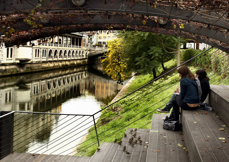 Until this intervention river Ljubljanica was physically and programmatically separated from the city ground floor for decades. This project is the first spatial intervention after 1930-ties that tends to connect the street level with the river. The last embankment projects which moderated the steap concrete river banks and thus enabled accesses to the river were the ones of architect PleÄnik. Petkovskovo embankment is the last »green« river bank providing easy connection of the street and the river level with gentle slope of the terrain.